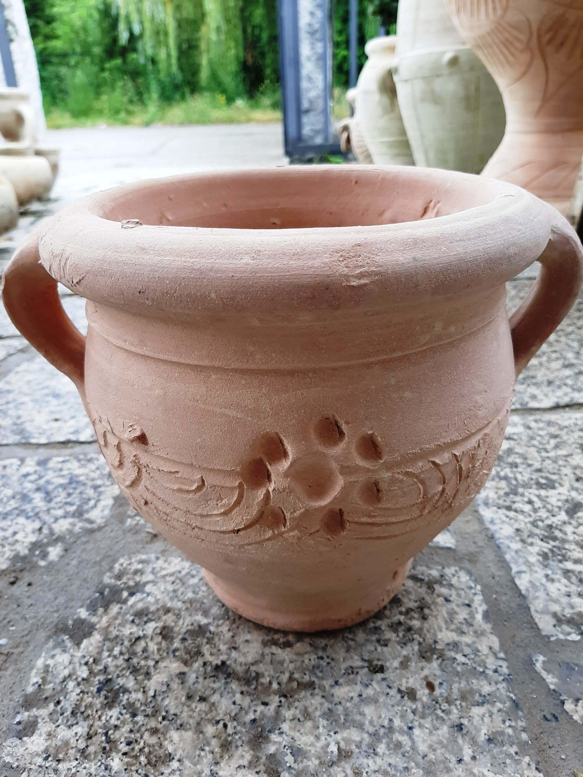 Amfory sú všetky vyrábané ručne, preto každý jeden kus je jedinečný a individuálny. Sú vyrábané výhradne z prírodného materialu terakota – teda pálená hlina a vypálené v prírodných peciach pri vysokých teplotách aby boli odolné poveternostným podmienkam a mrazu. Rozmery amfory ako aj farba amfory sa môžu odlišovať, nemusia byť totožné obrázku produktu!
