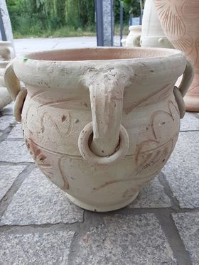 Kvetináč Torino,4 Uši,výška je 35 cm a priemer otvora je31cm,cena je 30 Eur…..Amfory sú všetky vyrábané ručne, preto každý jeden kus je jedinečný a individuálny. Sú vyrábané výhradne z prírodného materialu terakota – teda pálená hlina a vypálené v prírodných peciach pri vysokých teplotách aby boli odolné poveternostným podmienkam a mrazu. Rozmery amfory ako aj farba amfory sa môžu odlišovať, nemusia byť totožné obrázku produktu!